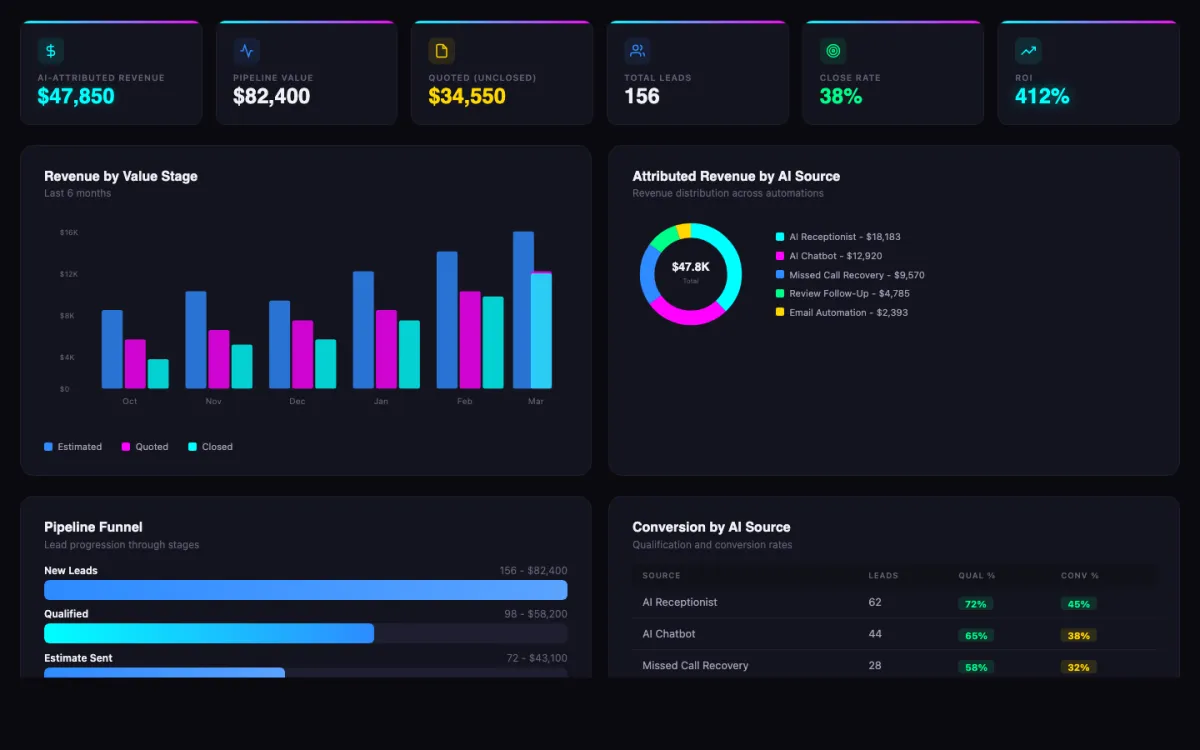 AI-powered automation solutions for home services businesses. Built to help HVAC, plumbing, electrical, and trade companies save time, book more jobs, and grow.